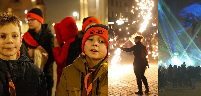 Na głogowskim rynku sobotni wieczór zakończył się wyjątkowo efektownie. Po uroczystym powitaniu Światła Betlejemskiego w kolegiacie przez harcerzy ZHP przyszedł czas na barwne i widowiskowe zwieńczenie dnia.