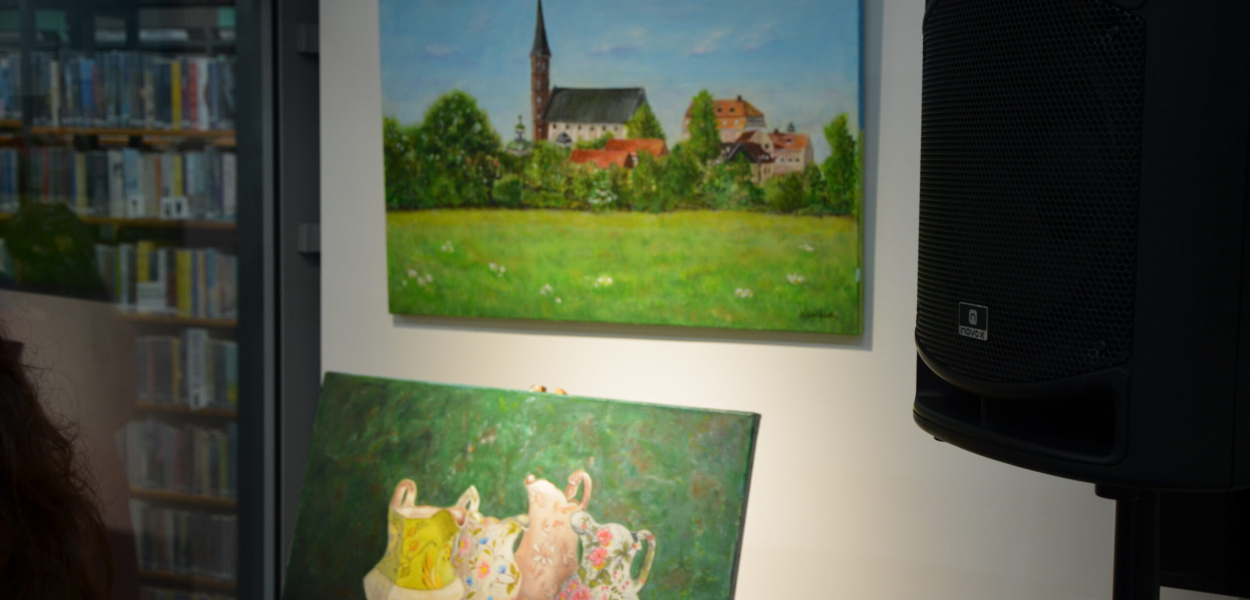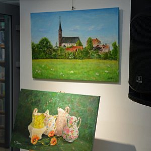 Jak mówi autorka, życie nie daje za wiele czasu na rozwijanie pasji. Miała rodzinę, trójkę dzieci. Dopiero później obowiązków ubyło na tyle, by mogła udzielać się w pracowni w MOK-u. Tam co roku w kwietniu są wystawy. Główny temat wernisażu brzmiał "Czas wspomnień", bo wszystkie obrazy w jakimś stopniu nawiązywały do wspomnień artystki. Każdy zainteresowany mógł zajrzeć do kroniki, która była wystawiona tuż obok obrazów. Choć to jedynie jedna z czterech części, była przepełniona zdjęciami i dyplomami. W Miejskiej Bibliotece Publicznej to już czwarta taka wystawa.