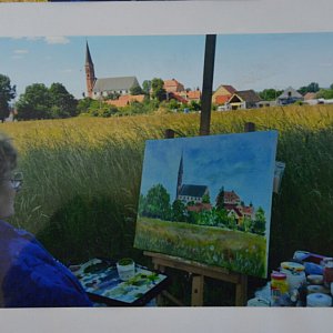- To jest czas na wspomnienia z lat 1995-2002. Te mniejsze obrazki, czyli grafiki, były malowane w Grecji - oznajmia pani Danuta Po tych grafikach zaczęła malować w kolorach. I tak do dnia dzisiejszego. Inspirowane Grecją w latach 2000-2006. Grafik namalowała przeszło 100. Obrazy, które odwiedzający mieli okazję podziwiać na wystawie są tym, co pozostało pani Danucie, bo spod jej ręki wyszło znacznie więcej obrazów i grafik - Dwa obrazy jeszcze pożyczyłam na dziś od koleżanek, którym je sprezentowałam. W domu większości już nie mam. Teraz tak się zastanawiam, że żal mi tamtych obrazów, które sprzedałam. Bo co jest wart pieniądz? - mówi artystka - ale z drugiej strony ile to można w domu trzymać?