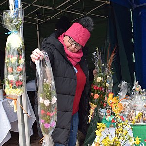 Na placu przed kościołem w Jaczowie stoiska miały wszystkie sołectwa. Można się było zaopatrzyć w ciasto – z którego gospodynie z gminy Jerzmanowa słyną. Były także przepyszne, ale i przepiękne mazurki. - Gospodynie z Bądzowa się w nich specjalizują – zapewniła sołtys Anna Rysz, która sama kilka upiekła. Z gorzką czekoladą i karmelem, z biała czekoladą. Po prostu zawrót głowy. Były też babki świąteczne, pieczywo, wyroby wędliniarskie własnej roboty oraz oczywiście palmy wielkanocne. Prawie nikt nie opuścił tego miejsca bez kolorowej palmy.