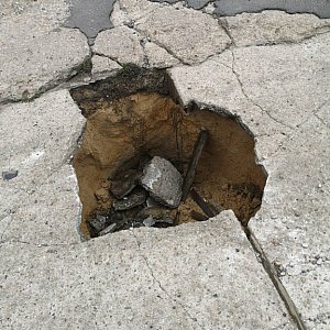 To nie pierwsze takie zdarzenie na terenie miasta. Zapadają się ulice i chodniki, rozpadają się pokrywy kanałów technologicznych. Tym razem ziemia z fragmentem nawierzchni osunęła się – dosłownie na oczach kierowców, na zjeździe z ul. Galileusza w kierunku klubu Mayday, na wysokości parkingu przez Centrum Kopernik. Zapadlisko jest dość pokaźne i głębokie.