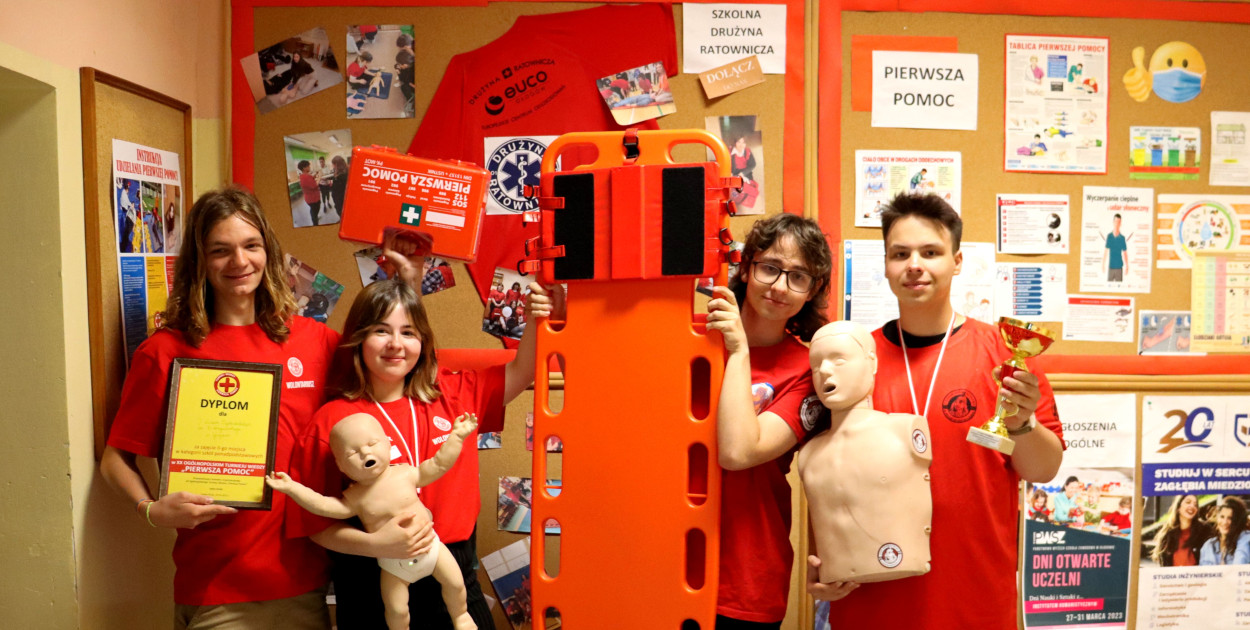 W składzie zawodników było czterech: Bartosz Pieniążek, Emilia Nyczko, Jakub Małek, Błażej Soja. Na zawody pojechała jednak cała szkolna drużyna ratowników pod opieką pani Elżbiety Soji, czyli blisko 30 osób. Wszyscy pojechali kibicować i uczyć się, ponieważ w przyszłych latach skład się zmienia i to oni będą walczyć o pierwsze miejsce, ponieważ część zespołu to tegoroczni absolwenci. – Wiemy, że sobie poradzą, bo regularnie ćwiczyliśmy z nimi na naszych szkolnych fantomach – zapewniają medaliści i przedstawiają fantomy, którym nadali zabawne imiona: Kazik, Ania i Marcin. – Moim ulubieńcem jest mały Bożydar – przyznaje Emilia pokazując fantoma-niemowlaka. Dzięki tym fantomom mogą przećwiczyć każdy scenariusz.