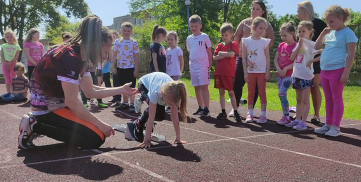 Opowiedział nam o lekkoatletyce, o stadionie, o treningach, zdrowym stylu życia i zdrowym odżywianiu. Ale najważniejsze – trenował razem z dziećmi. Pokazał jak prawidłowo wystartować do biegu sprinterskiego oraz jak wykonać skok w dal i trójskok. Każdy sześciolatek mógł pod okiem mistrza spróbować swoich sił w skoku i starcie do biegu. Zajęcia bardzo się dzieciom podobały i mamy nadzieję, że znajdzie się wśród przedszkolaków miłośnik lekkoatletyki