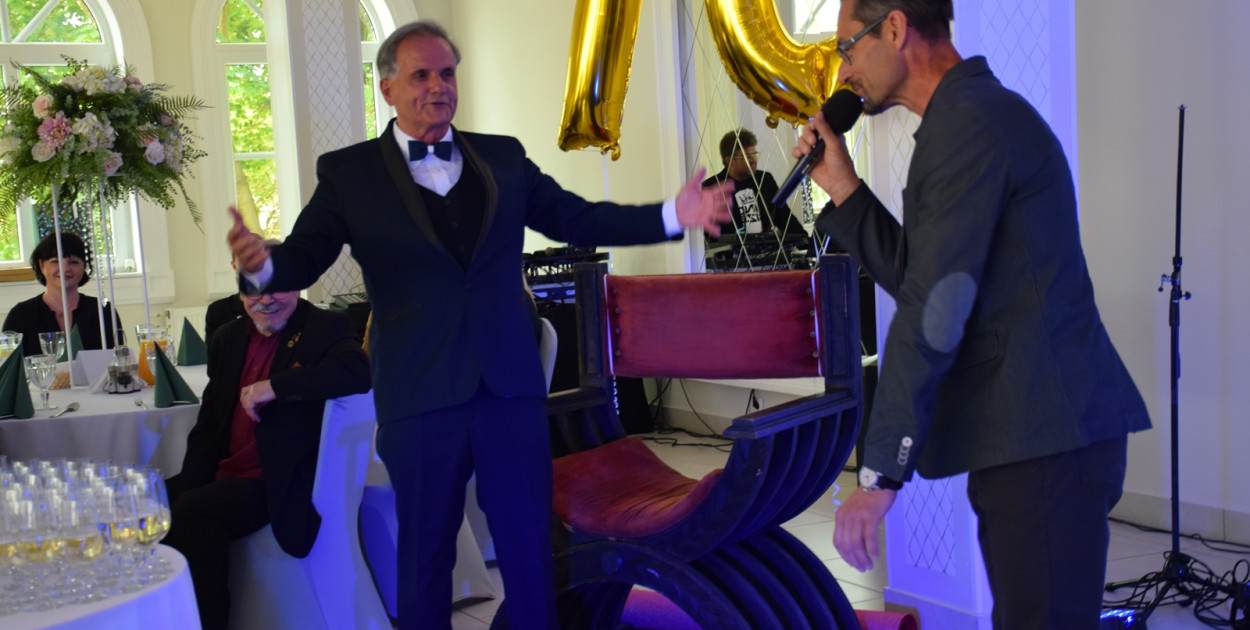 Jakże wszystkich jubilat zaskoczył, gdy nagle w trakcie uroczystości wyszedł i powrócił ze swoją wybranką, i gdy na salę wkroczył prezydent Głogowa Rafael Rokaszewicz. Który w tych niezwykłych okolicznościach udzielił ślubu młodej parze i złożył wspaniałe życzenia wszystkiego najlepszego na nowej drodze życia.