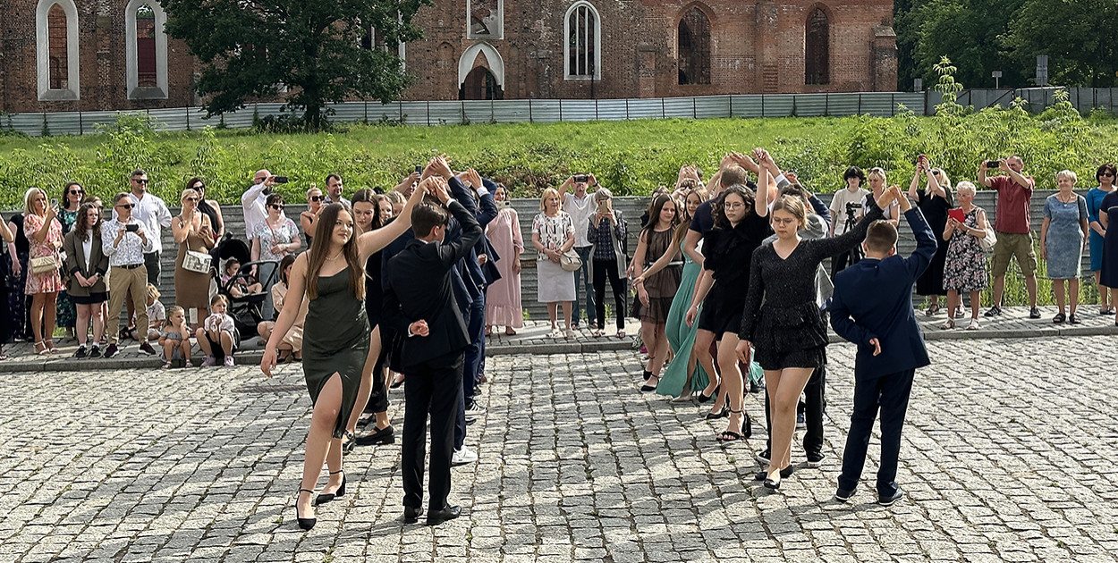 Zaraz po zakończeniu uroczystości w teatrze uczniowie klas ósmych odtańczyli poloneza. To już tradycja, że przed ratuszem tańczą uczniowie z niemal wszystkich szkół w Głogowie. Nie zabrakło więc również uczniów tej prywatnej.