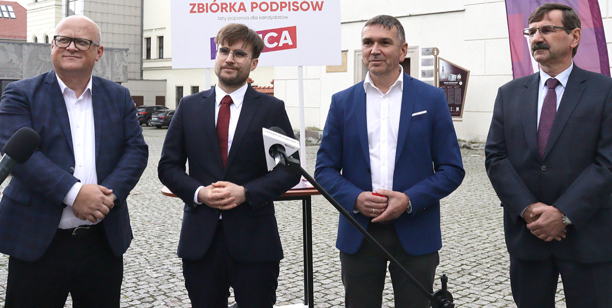 W krótkiej konferencji kandydatów na głogowskim Rynku uczestniczyli także zastępca prezydenta Głogowa Wojciech Borecki oraz wicestarosta głogowski Jeremi Hołownia.