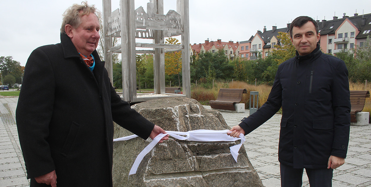 Rzeźbiarz Janusz Owsiany i prezydent Głogowa Rafael Rokaszewicz symbolicznie odsłonili dziś (26.10.) Głogowskie Universum – najnowszą rzeźbę w naszym mieście, która kilkanaście dni temu stanęła na Bulwarze Nadodrzańskim. To już szóste Universum Janusza Owsianego, a powstało z okazji jubileuszu 40-lecia pracy artystycznej. W kameralnej uroczystości wzięli udział mieszkańcy i przyjaciele znanego głogowskiego artysty.