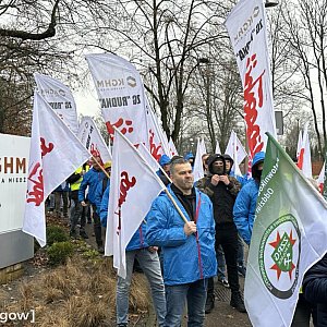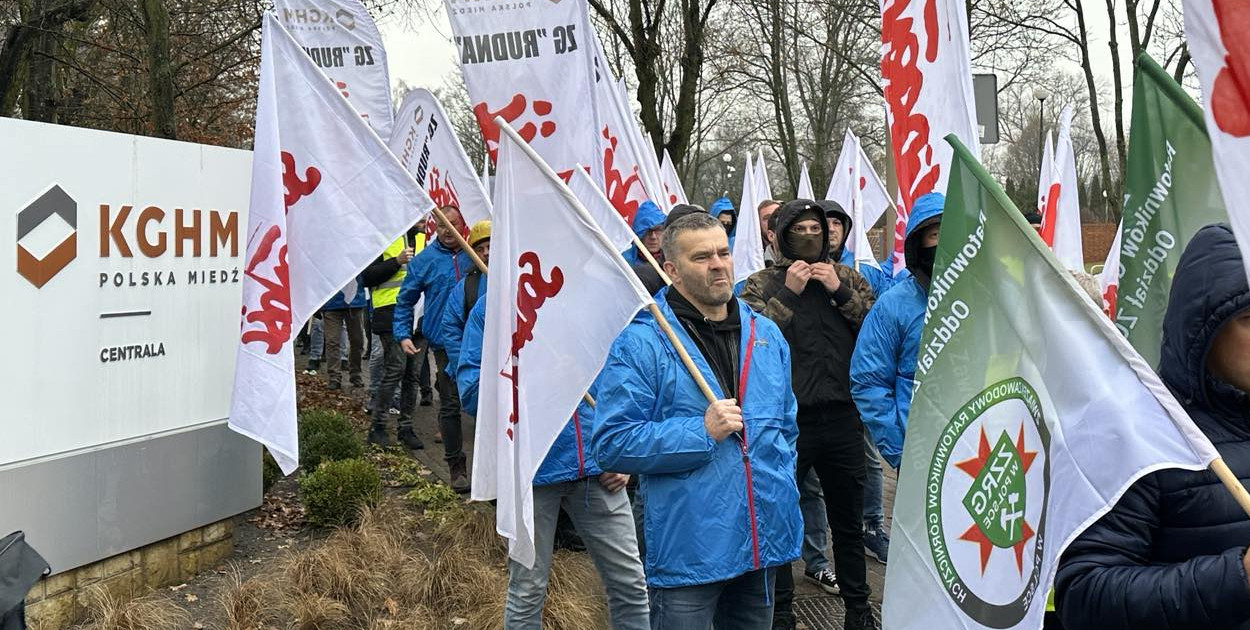 Przed siedzibą zarządu KGHM Polska Miedź S.A w Lubinie rozpoczyna się protest. Na miejscu są przedstawiciele różnych organizacji związkowych i wciąż docierają kolejni.
