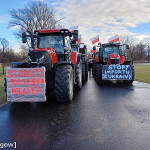 Jak powiedział organizator protestu - Jarosław Michalski z Krzepielowa, w dzisiejszym (24.01.) proteście w Głogowie udział wzięło ponad 200 rolników, którzy przyjechali żeby zamanifestować swoje niezadowolenie z rządzących, którzy zafundowali im brak możliwości sprzedaży płodów rolnych, nieopłacalność produkcji i obcą dyktaturę na własnej ziemi. Zgromadzili się w Głogowie na parkingach przy krajowej 12, wysłuchali przemówień organizatorów, posili się polskimi kiełbaskami z grilla i rozjechali się do domów. Zapowiadają jednak, że jeśli ich postulaty zostaną zignorowane przez rządzących, to wrócą za tydzień lub dwa i tak spokojnie już może wtedy nie być.