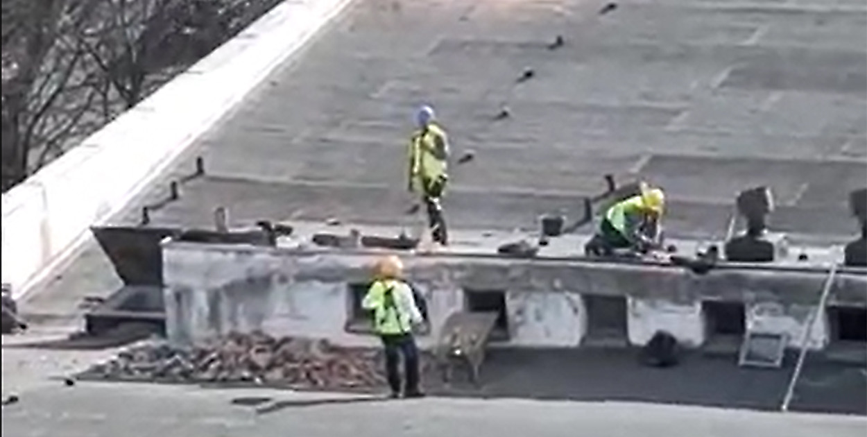 Na przebudowie kina Jubilat pracownicy już przestrzegają przepisów BHP i pracują na dachu zabezpieczeni – w specjalnych szelkach i w kaskach ochronnych. Mamy film. To po sytuacji z poniedziałku, gdy mogło się zakończyć tragedią.
