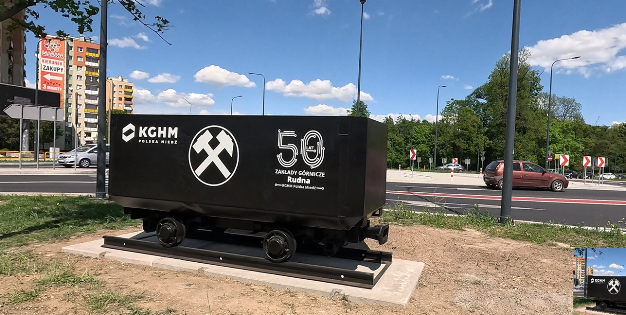 Rondo Górników czekało już tylko na wisienkę na torcie, czyli kopalniany wagonik na wysepce pośrodku. I pojawił się, lśniący świeżą czarną farbą z logo KGHM, łącznie z szynami na postumencie. Tyle że obok ronda. Bez zapowiedzi, bez oficjalnego odsłonięcia i przemowy. Kierowcy kołujący na rondzie przecierają oczy z niedowierzania – dlaczego wagonika nie ustawiono na wysepce, jak kadź hutniczą na rondzie Hutników czy działko przeciwpancerne na rondzie Artylerzystów?