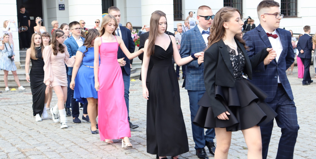 Uczniowie przed oficjalną prezentacją poloneza na oczach przechodniów do ostatniej chwili trenowali. Emocje opadły po wyciszeniu muzyki, kiedy przyszedł czas na pamiątkowe zdjęcie pod ratuszem.