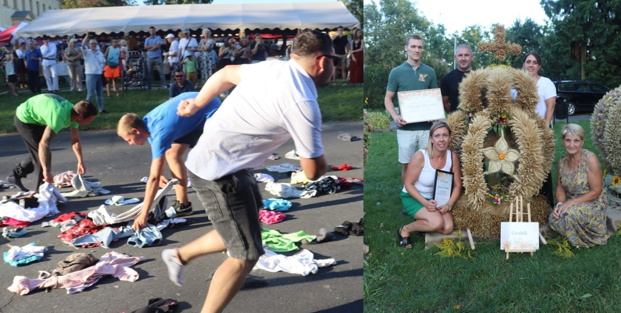 Wójt po oficjalnej części przebrał się w bardziej luźny strój i wraz z mieszkańcami bawił się podczas potyczek sołectw. I tu emocji zdecydowanie nie zabrakło. Mieszkańcy wchodzili w wielkie spodnie, znajdowali w stosie ubrań elementy garderoby, przebierali pościel i wykazywali się ogólną sprawnością. Rywalizację wygrało sołectwo Grabik, pod wodzą, nowego i jednego z najmłodszych w regionie sołtysa – Macieja Szostaka. Drużyna Macieja w sobotę odniosła jeszcze jeden ważny sukces. Sołectwo Grabik otrzymało pierwszą nagrodę w konkursie na najlepszy wieniec dożynkowa. Grabik pokonał faworyzowany Kłobuczyn, a trzecie miejsce na podium przypadło sołectwu Korytów.