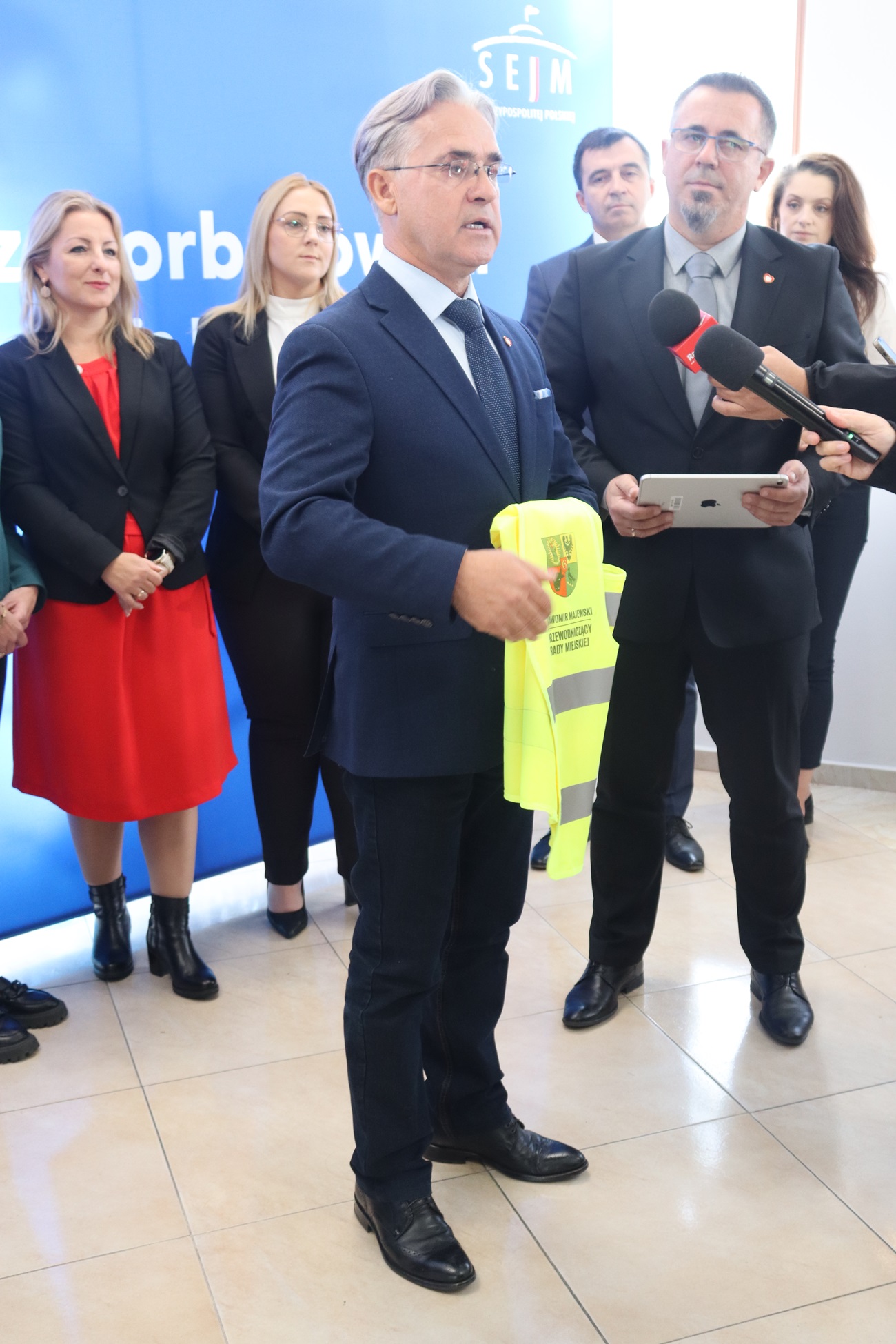 - Szanowni Państwo, my samorządowcy i politycy tacy jak nasz poseł, nie jesteśmy aktywni tylko przed wyborami. Wciąż mamy i będziemy mieć przyjemność spotykania się z mieszkańcami. I wiem, że nasz poseł reprezentujący cały region również ma taki obraz pełnienia swojej misji. Na dowód, że chcemy być zawsze blisko ludzi pokazuję tu specjalną jaskrawą kamizelkę. W takich wychodzimy do ludzi, aby każdy mógł nas dostrzec – powiedział Sławomir Majewski, prezentując kamizelkę na uroczystej konferencji posła. Pochwały w stronę posła słyszeliśmy również w przemówieniu starosty Michała Wnuka i prezydenta Rafaela Rokaszewicza, Na tej linii nie ma jak dotąd zakłóceń. Specjalne słowa skierowali do parlamentarzysty również samorządowcy z podgłogowskich gmin.