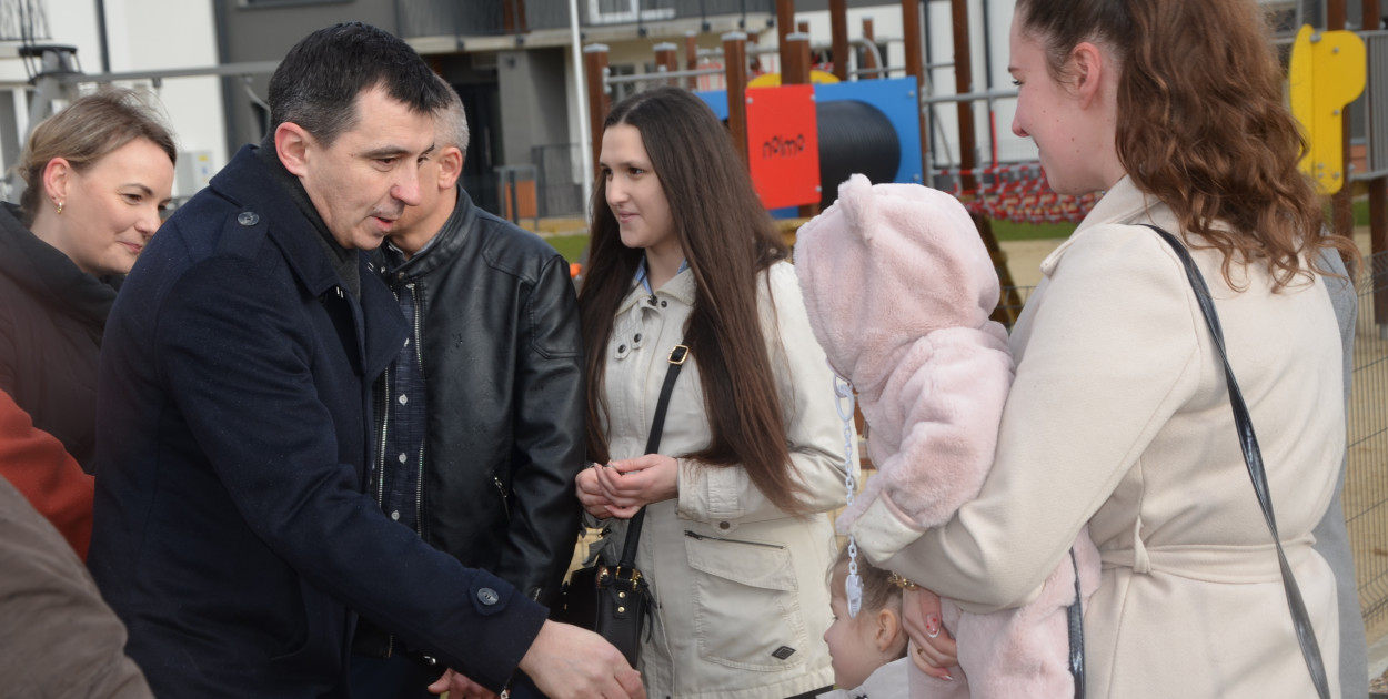 Dziś klucze do nowego mieszkania z trzema pokojami odebrali m.in. państwo Magdalena i Tomasz z trójka dzieci – 10 lat, 5 lat i 9 miesięcy.