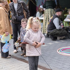 Nie zabrakło również atrakcji dla dzieci – po placu przechadzał się sympatyczny zając wielkanocny, który chętnie pozował do zdjęć. W specjalnej Szlacheckiej Zagrodzie odbywały się animacje oraz mini zoo, gdzie dzieci mogły z bliska zobaczyć małe kurczaczki i króliczki – te urocze zwierzątka były absolutnymi gwiazdami dnia.