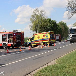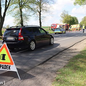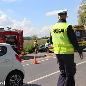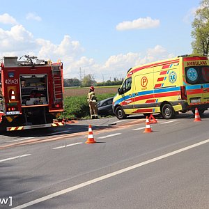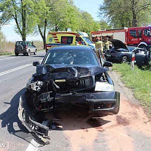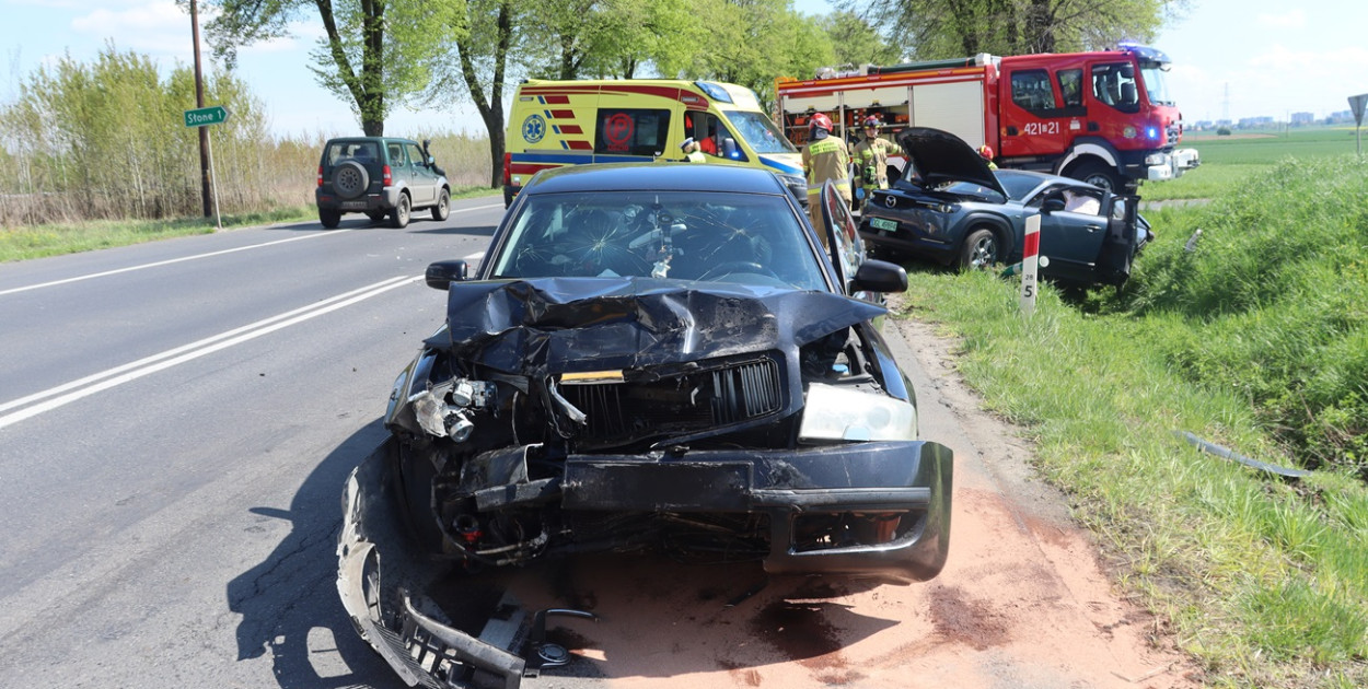 Zdarzenie miało miejsce około godziny 12:15. Na drodze wojewódzkiej zderzyły się dwa samochody osobowe. Siła uderzenia była tak duża, że jedno z aut wypadło z jezdni i znalazło się w przydrożnym rowie.