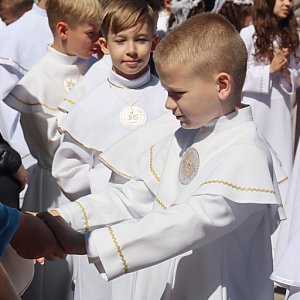 Dziś w kościele pw. Najświętszej Maryi Panny Królowej Polski na Osiedlu Kopernik w Głogowie odbyła się uroczystość Pierwszej Komunii Świętej. Sakrament przyjęło ponad setka dzieci, a wszystko w dwóch turach, aby zapewnić komfort i podniosłą atmosferę wszystkim uczestnikom.