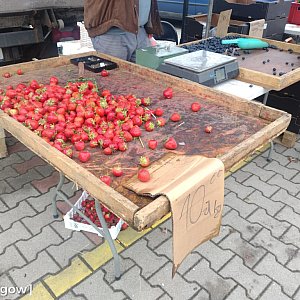 Zaczyna się sezon na świeże truskawki. Na targu w Głogowie można już kupić pierwsze prawdziwe truskawki z gruntu, nie spod folii. Jakie ceny?