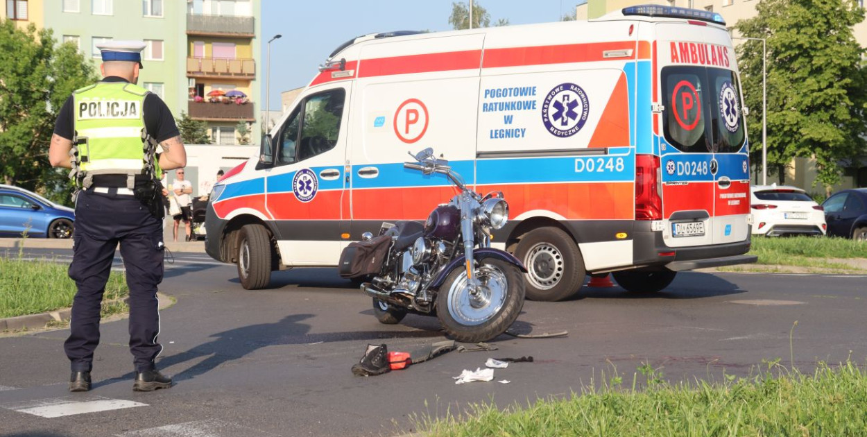 – Motocyklista jest przytomny, ale został zabrany do karetki – relacjonuje bezpośredni świadek zdarzenia. Poszkodowany doznał m.in. złamania nogi.