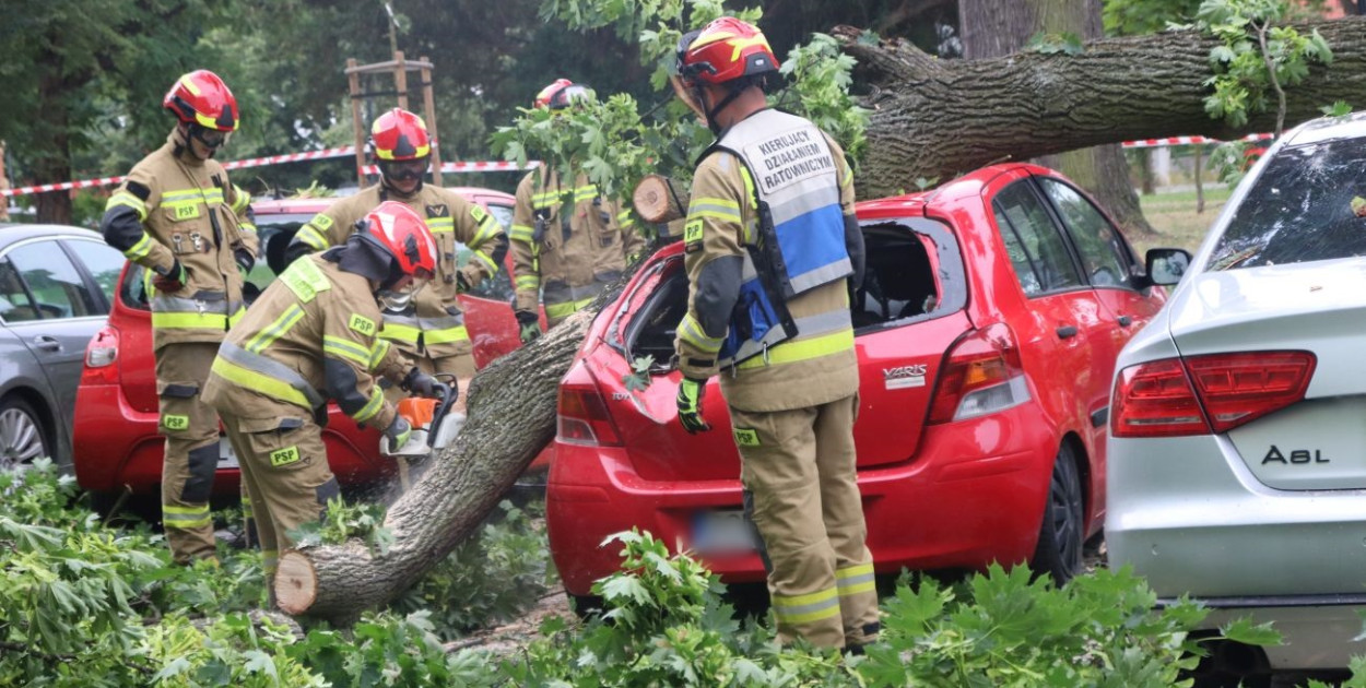 Na miejscu pracują również policjanci. Spisują protokoły, które mogą być pomocne w staraniach o odszkodowanie. Strażacy po uprzątnięciu terenu zajmą się także gałęziami, które mogą nie wytrzymać kolejnej nawałnicy.