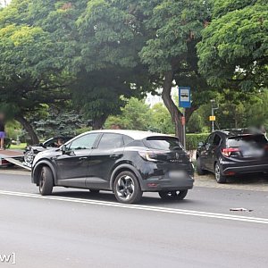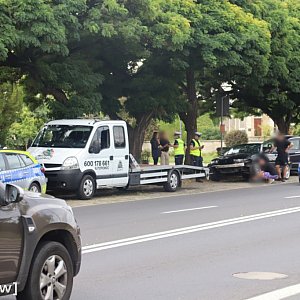 Do kolizji czarnego kabrioletu marki BMW z samochodem marki Renault doszło w połowie drogi między Mostem Tolerancji a dużym rondem. Oba pojazdy jechały od strony Serbów.