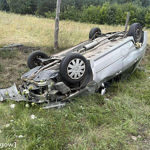 Kolejne groźne zdarzenie miało miejsce w Buczynie (gm. Radwanice). O godz. 15:51 strażacy otrzymali zgłoszenie o dachowaniu pojazdu na DK12.