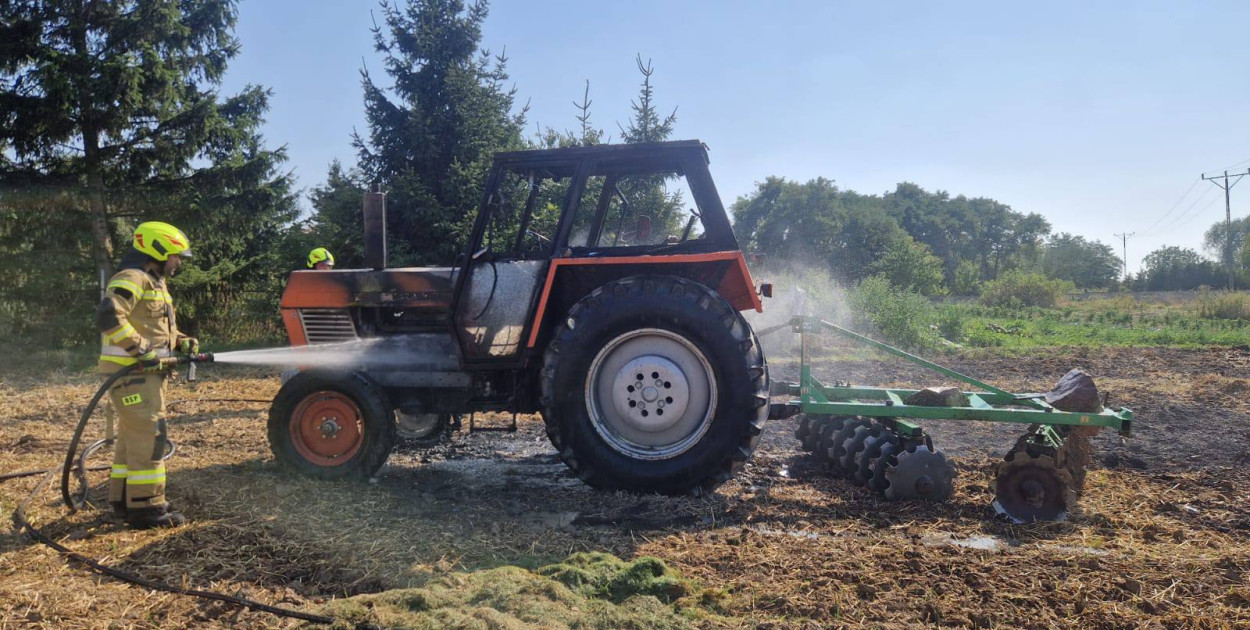 Cztery zastępy straży pożarnej gasiły ciągnik płonący we wsi Kłoda. To kolejny w ostatnich dniach pożar na polach koło Głogowa.