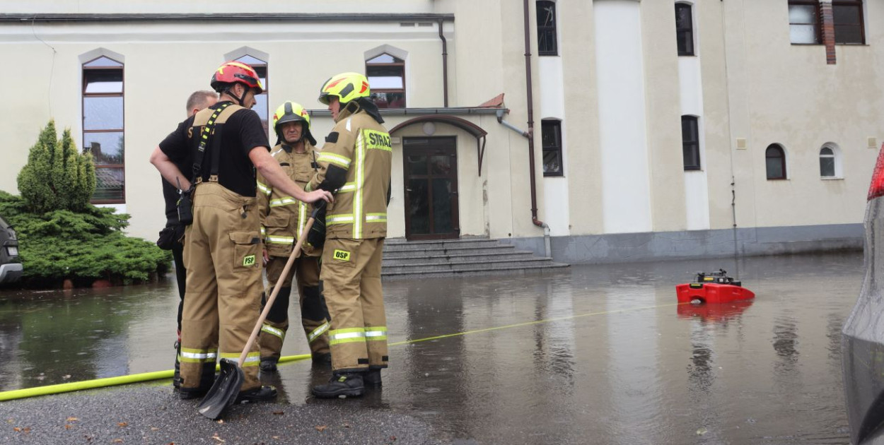 Dwie godziny konkretnego deszczu i pojawiły się kłopoty. Niekorzystnie wyglądała sytuacja na podwórzu przed klasztorem Redemptorystów. Obiekty parafii przy ul. Sikorskiego zostały w znacznej części podmyte. Strażacy z PSP Głogów ustawili na środku podwórza pompę, która ma osuszyć teren. Dodatkowo ekipa ręcznie przepycha wodę i sprząta po szybkiej powodzi na terenie parafii. Najdłużej potrwa osuszanie piwnic, ale warto dodać, że nieruchomości przy ul. Sikorskiego były już wcześniej wielokrotnie osuszane.