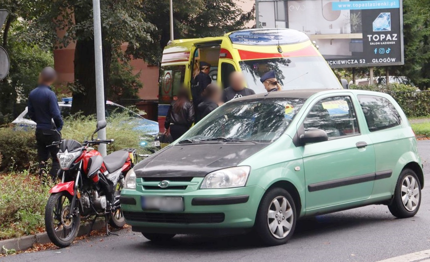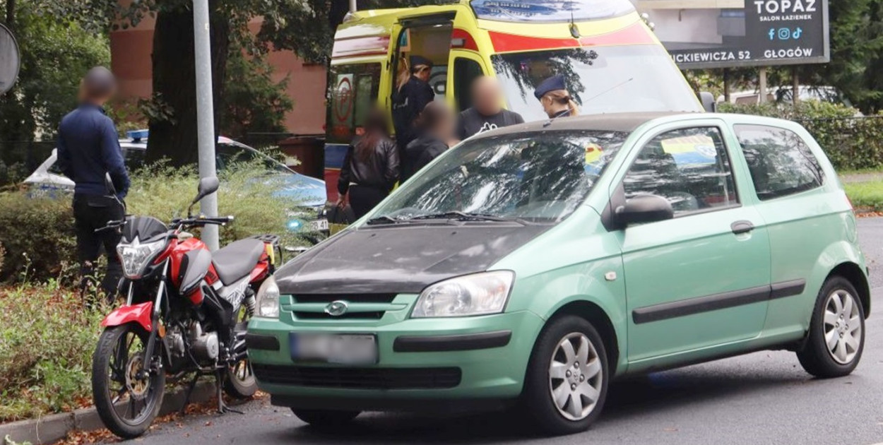 Policja na miejscu analizuje kolizję i również ostrzega: to nie pierwsze zderzenie motocykla z autem w tym rejonie Głogowa. Warto zachować tu szczególną ostrożność.