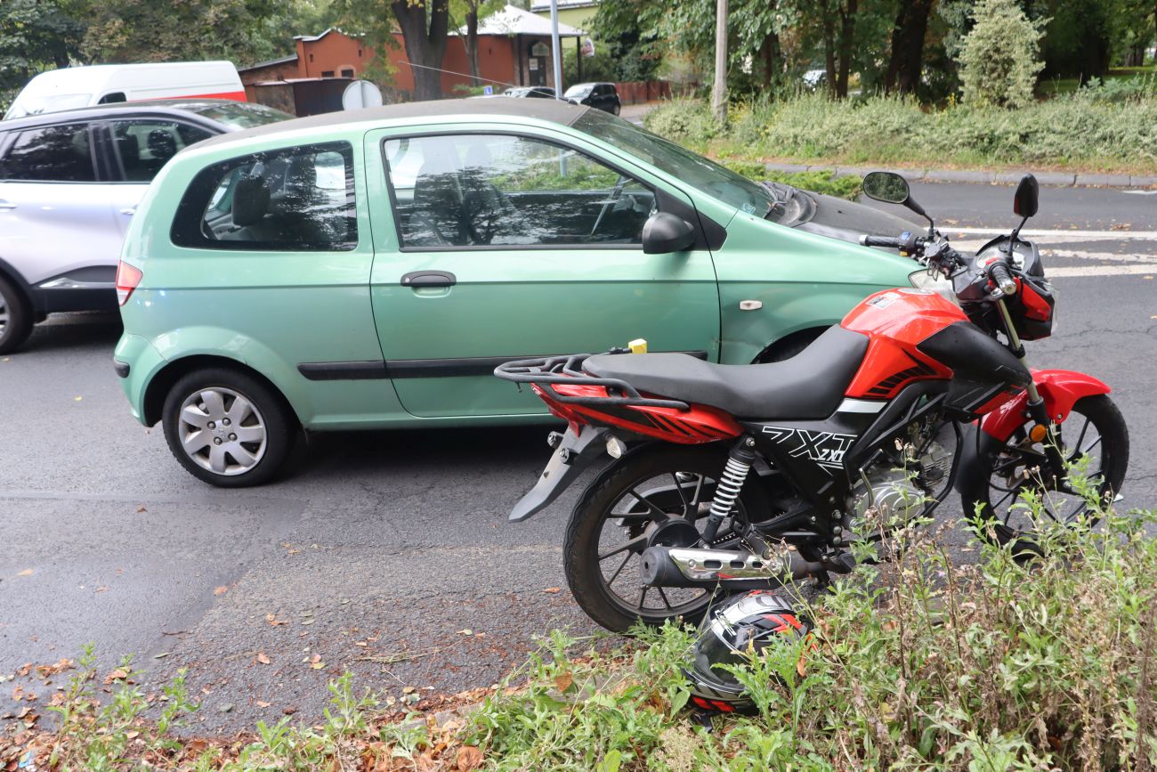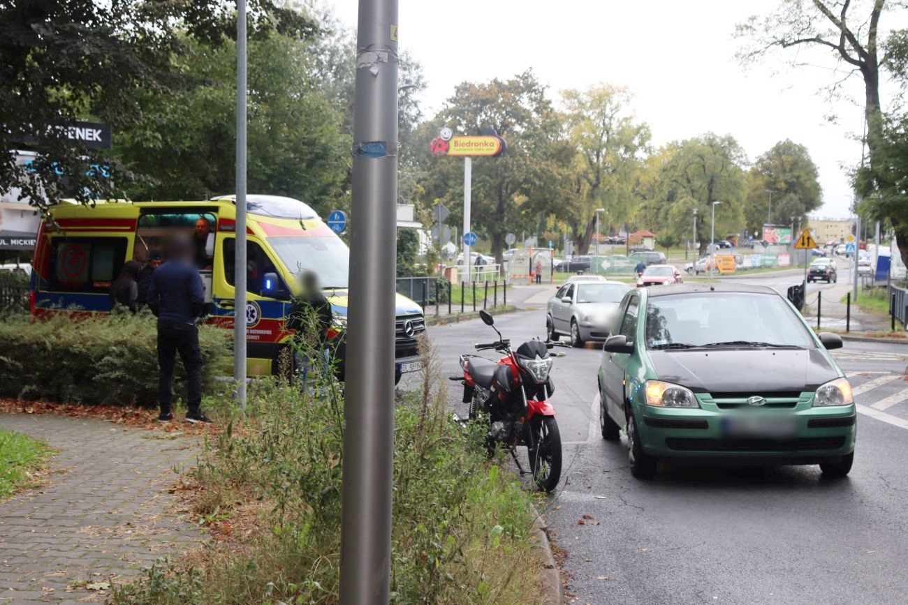 Interwencją pogotowia i policji zakończyło się zderzenie jednośladu z autem osobowym.