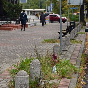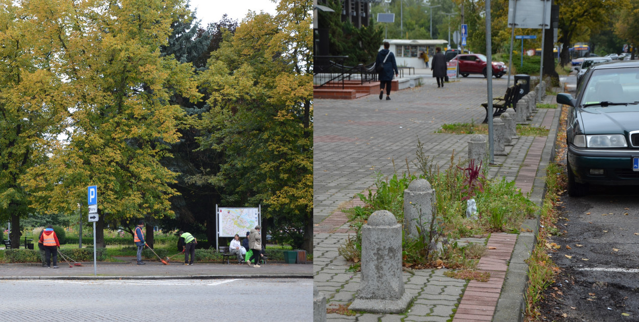 Dziś (7.10.) ekipa sprzątająca uwijała się na skwerze placu Tysiąclecia. Duże rondo jest świeżo wyplewione, chodniki na alei Wolności odświeżone przez testowaną w mieście od kilku tygodni maszynę myjącą. Rośliny już tak bujnie nie rosną, za to zaczyna się opadanie liści. Też będzie kupa sprzątania i narzekań.