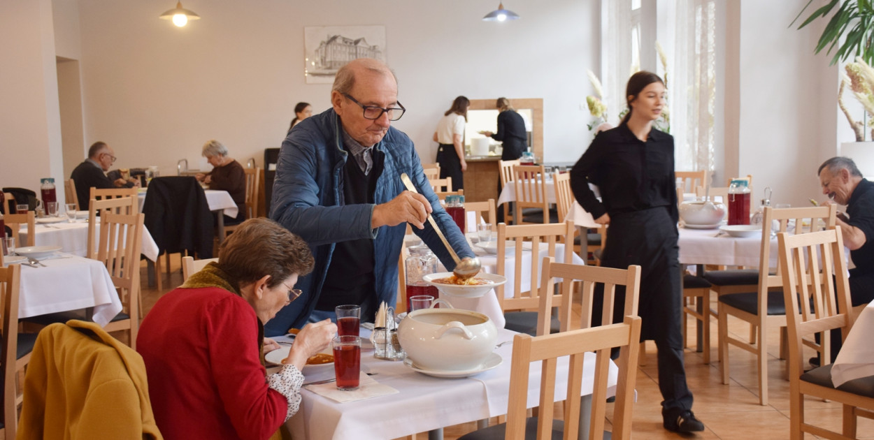 Jedni jedzą na miejscu, inni biorą na wynos. Stołuje się tu – trzeba podkreślić – bardzo dużo emerytów.