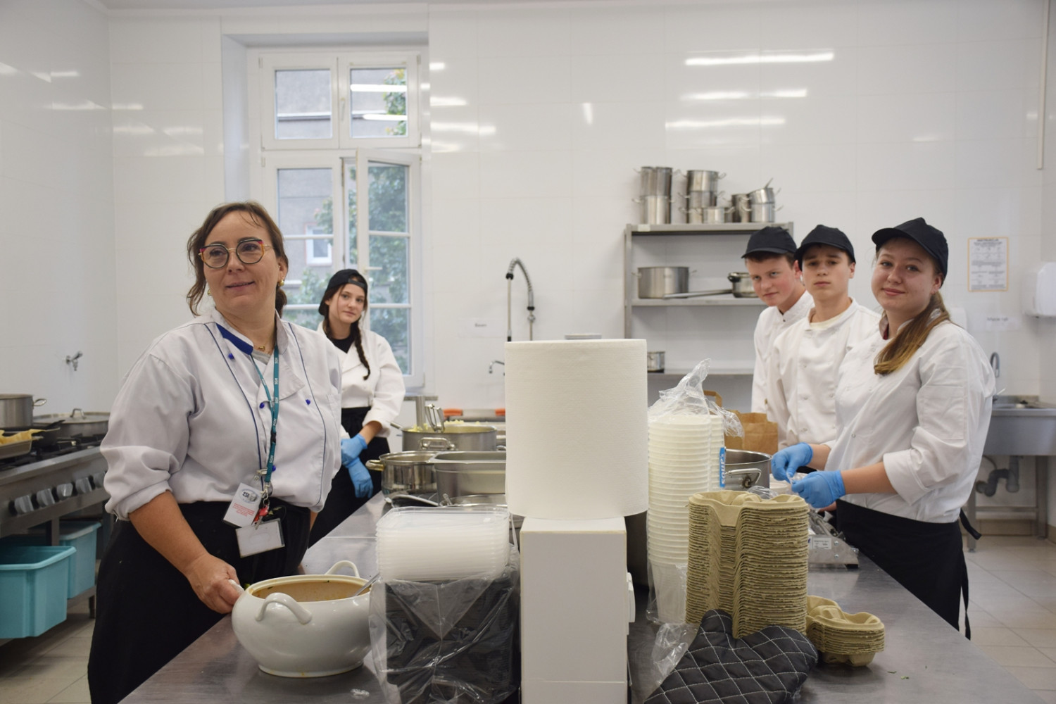 – mówią. W środę na start była zupa pomidorowa z makaronem, a na drugie danie filet z kurczaka w płatkach kukurydzianych z ziemniakami oraz sałata ze szczypiorkiem i śmietaną. Jutro fasolowa i zrazy po warszawsku z kluskami śląskimi.