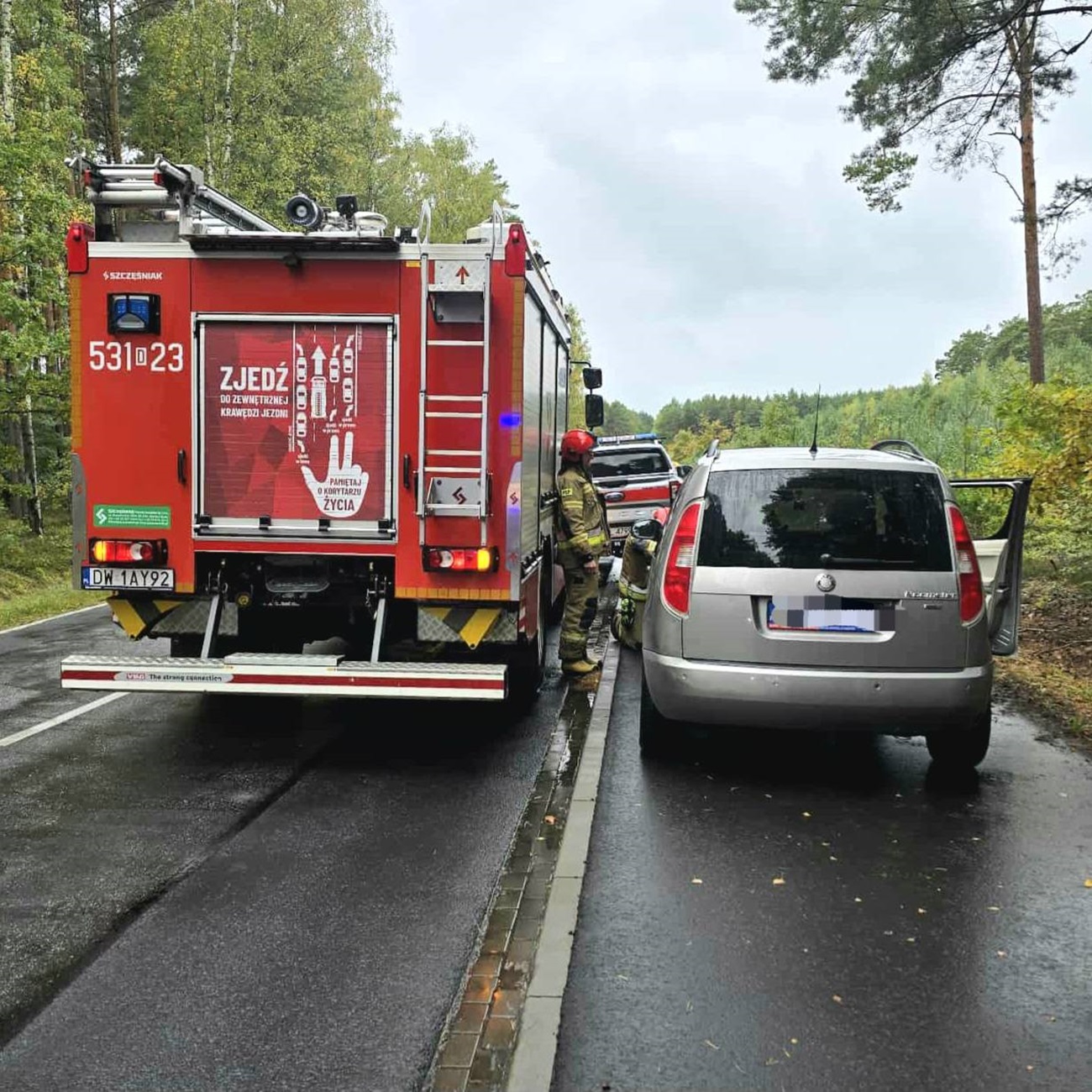 W kolizji brały udział dwa pojazdy osobowe – skoda oraz volkswagen. Na miejsce zdarzenia skierowano zastępy straży pożarnej z JRG Polkowice, Zespół Ratownictwa Medycznego oraz Policję.