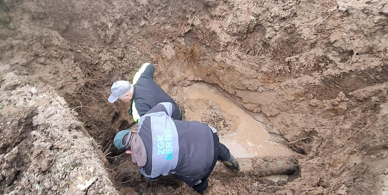 Zakład Gospodarki Komunalnej w Serbach właśnie poinformował o zlokalizowaniu miejsca awarii. Rura strzeliła w Serbach między ulicą Kwiatową a Wodną.