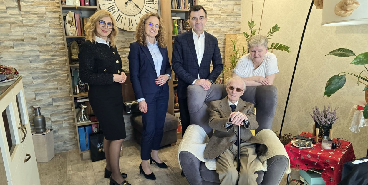 Wciąż pełen wigoru solenizant dołączył do grona głogowskich stulatków, a z tej okazji złożyłem mu najserdeczniejsze życzenia zdrowia i kolejnych lat szczęśliwego życia, wręczając też drobne upominki