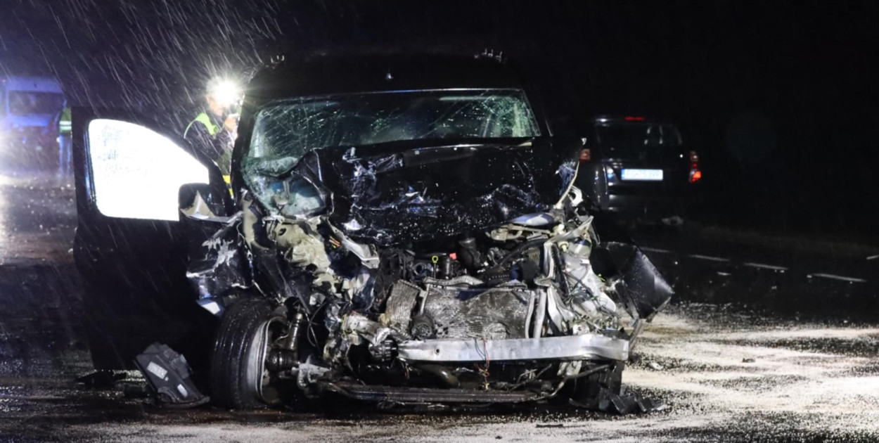 W wyniku gwałtownego hamowania doszło do serii zderzeń. Karawan ma całkowicie zniszczony przód, bus Peugeot wypadł z drogi i wylądował w rowie, a pozostałe pojazdy zatrzymały się po przeciwnej stronie ulicy.