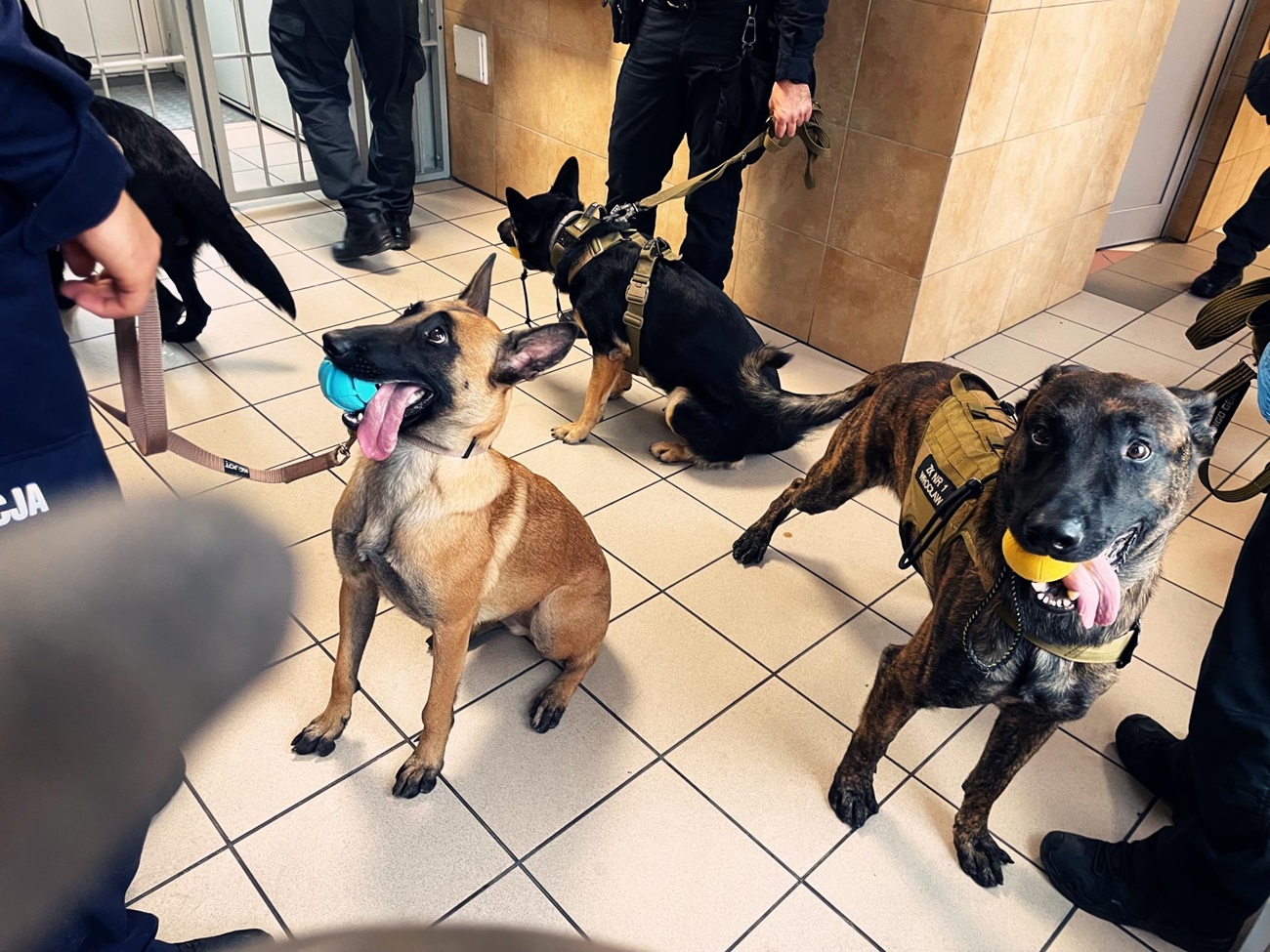 Psy służbowe wykazały się dużą czujnością i precyzją, wspierając funkcjonariuszy w szczegółowych przeszukaniach. Cała akcja przebiegła sprawnie, bez zakłóceń i z zachowaniem obowiązujących procedur bezpieczeństwa.
