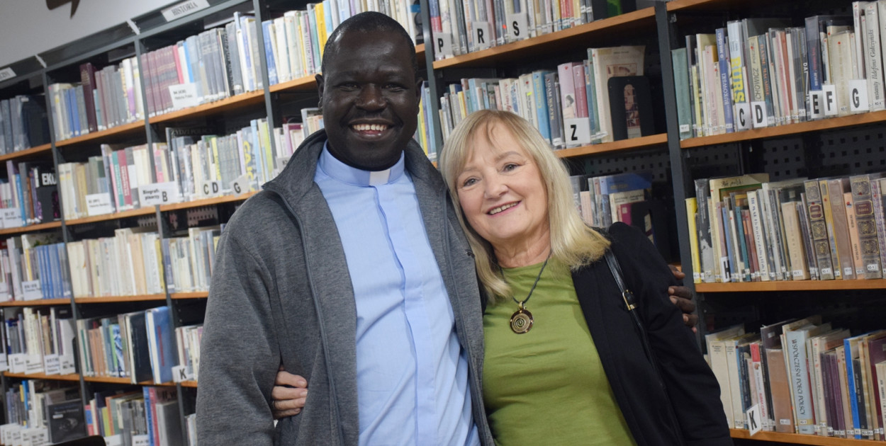 Grażyna Sroczyńska szczęśliwa, bo do biblioteki na os. Kopernik zaprosiła arcyciekawych gości. Przyjechali prosto z Afryki, a konkretnie z Ugandy, gdzie pomagają ludziom. Przywieźli także wspaniałe opowieści, książki i filmy o tamtym rejonie i życiu w nim.