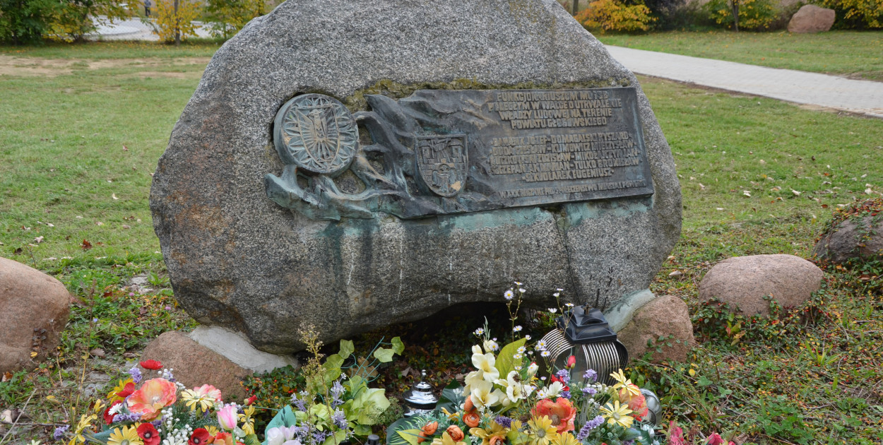 Tablica pamięci dziewięciu poległych funkcjonariuszy MO i SB utrwalających władzę ludową na terenie powiatu głogowskiego, od społeczneństwa miasta i powiatu, została umieszczona w 30. rocznicę PRL.