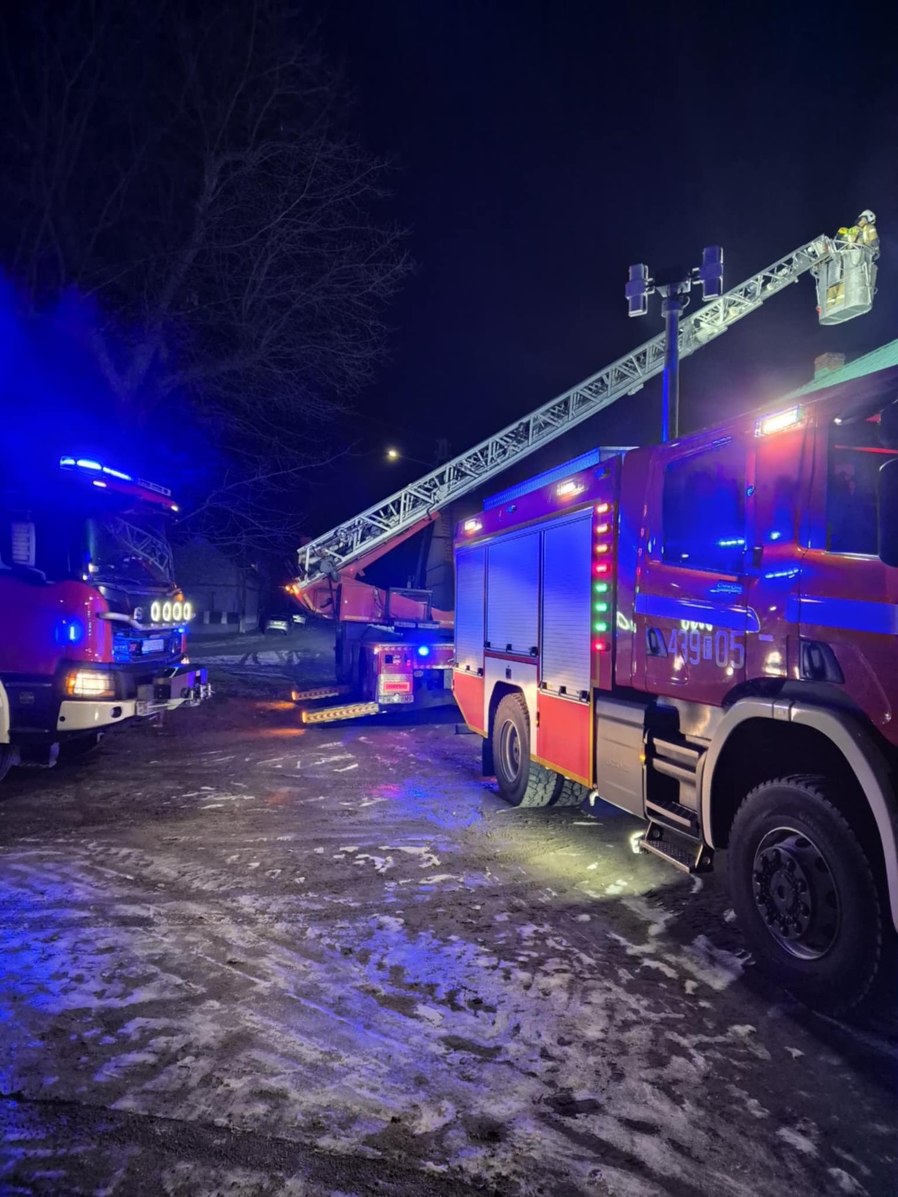Na miejscu okazało się, że ogień rozwinął się w przewodzie kominowym jednego z budynków. Strażacy do gaszenia użyli m.in. specjalistycznej drabiny.