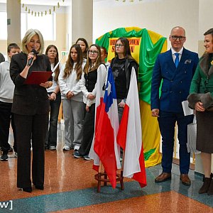 Goście z Chile odwiedzili szkołę w Gaworzycach, gdzie odbyło się uroczyste wręczenie biletów na kolejną wymianę. Razem z Zastępcą Wójta Beatą Taczyńską-Pietruś bilety wręczała Rocio Amarilla Paez.