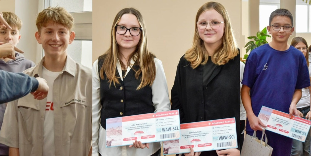 W Szkole Podstawowej w Gaworzycach odbyło się uroczyste wręczenie biletów dla uczniów, którzy w lipcu 2026 roku polecą do Chile. To nagroda za ich bardzo dobre wyniki w nauce oraz nienaganne zachowanie, będąca częścią współpracy Gminy Gaworzyce z Gminą Sierra Gorda oraz kopalnią Sierra Gorda SCM.