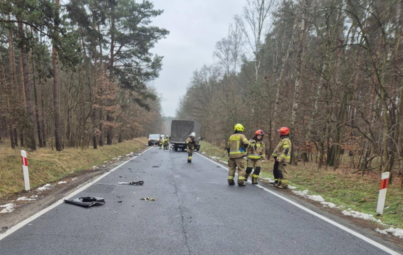Droga wojewódzka pod Sławą została zablokowana po kolizji dwóch pojazdów. Na miejscu pracują policjanci i strażacy.