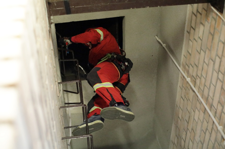 Gdy już dotrą na szczyt, zaczyna się właściwa operacja. Najpierw sprawdzenie lin i zabezpieczenia. Bezpieczeństwo to podstawa.