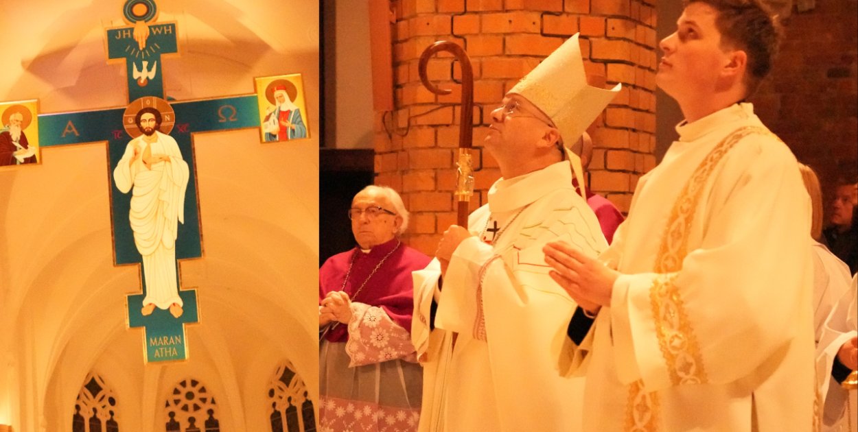W głogowskiej kolegiacie poświęcono dziś 7-metrowy krzyż z dwustronnym wizerunkiem Chrystusa.