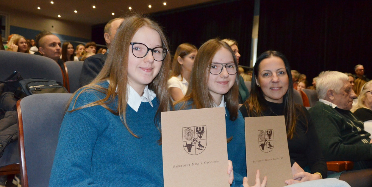 Podczas drugiej (3.12.) uroczystości prezydent Głogowa wręczył listy gratulacyjne najzdolniejszym uczniom szkół podstawowych nr 10 i 12. Jest ich tak wielu, że mieli osobną galę! Teatr znów się wypełnił.