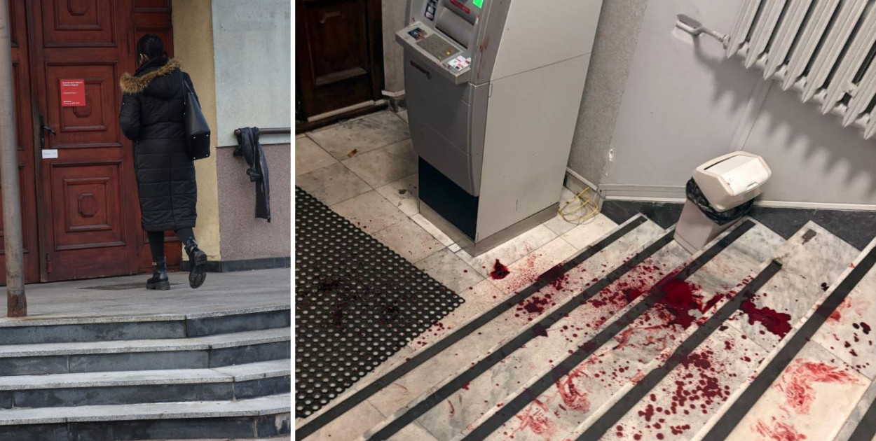 Cały przedsionek w jednym z głogowskich banków był we krwi. Krew na schodach, krew na posadzce. Jakby się ktoś tu bił albo jakby ktoś był ranny.