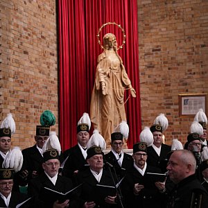 W dalszej części homilii duchowny przywołał starą tradycję związaną z dniem św. Barbary – zwyczaj obcinania gałązek wiśni lub forsycji i stawiania ich w wazonie, by zakwitły na Boże Narodzenie. – Chcemy patrzeć w przyszłość. Tak jak te gałązki przynoszą kwiaty mimo tego, że wydają się martwe – tak nasze życie potrzebuje perspektywy nowości, piękna i świętowania – mówił. Na zakończenie duchowny raz jeszcze zwrócił się do zgromadzonych górników: – Święta Barbara to patronka ludzi trudnej pracy. Na co dzień pokonujących trudności. Ale też ludzi z wiarą stałą, żywą i ufną. Niech wyprasza wam bezpieczeństwo, przyjaźń, wzajemną pomoc i nadzieję – powiedział, kończąc kazanie trzykrotnym wezwaniem: „Szczęść Boże! Szczęść Boże! Szczęść Boże!”